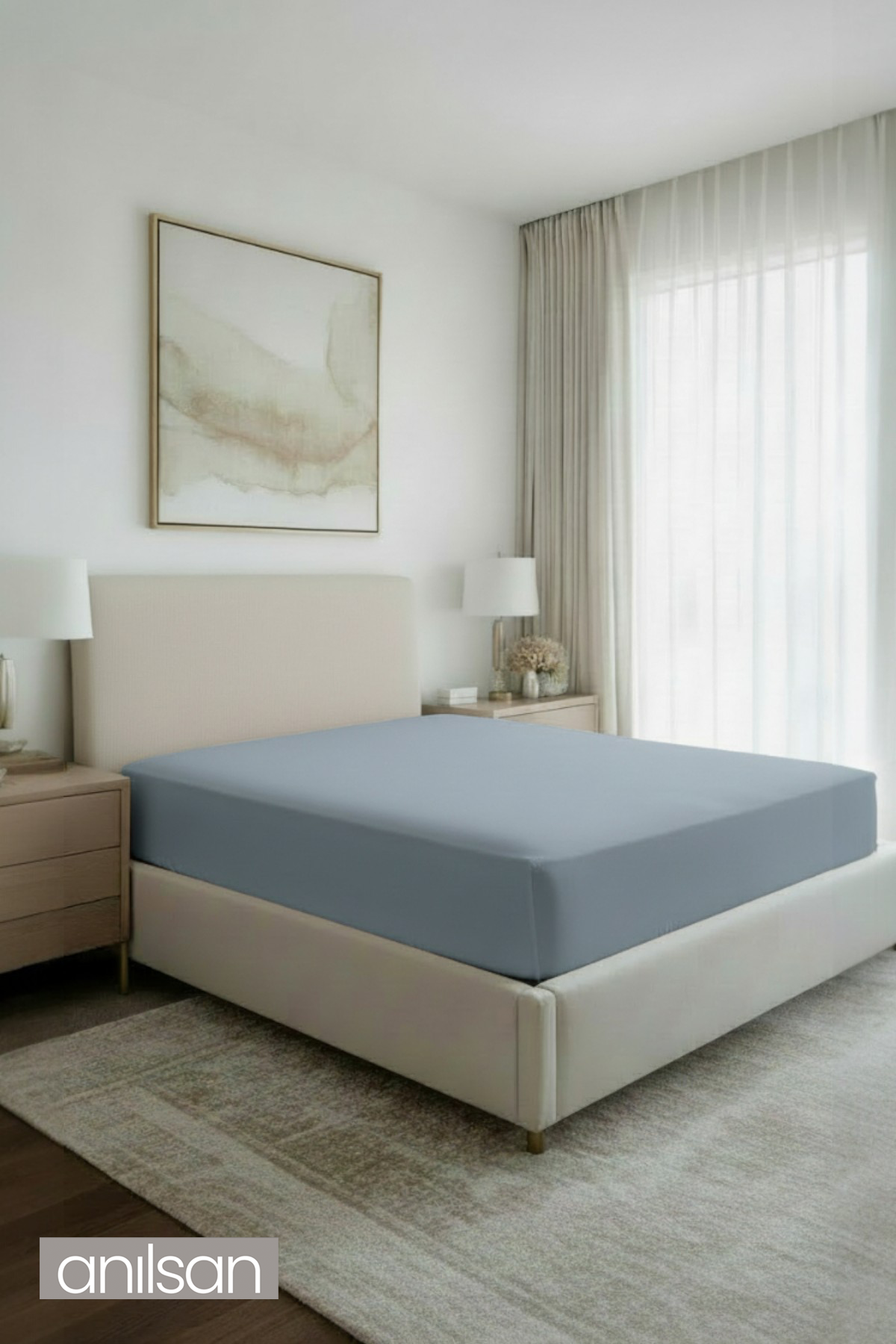 Jersey Çift kişilik Lastikli Çarşaf %100 Pamuk - Su Yeşili